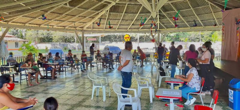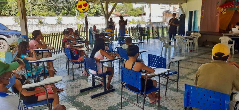 A Escola Municipal de Educação Infantil Paraíso do Murinim, localizada no distrito do Murinim, foi a primeira unidade escolar a receber os técnicos da Vigilância Epidemiológica para identificar anticorpos totais maduros (IgM e IgG) contra a COVID-19 nas crianças.