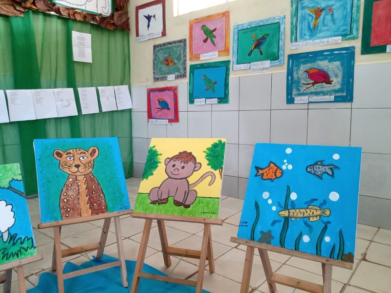 Em cada sala, os alunos apresentavam obras literárias construídas por eles mesmos, inspiradas nas obras dos artistas paraenses.