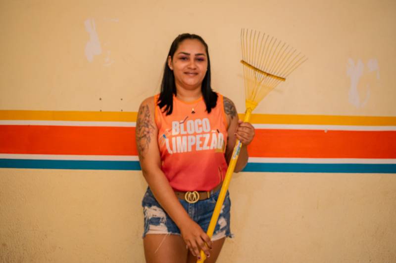 O carnaval de Benevides também pôde contar com a presença do Bloco Limpezão, que se responsabilizou pela limpeza dos corredores da folia, limpando tudo atrás de cada bloco que passava na avenida. Talicia Dhafne, gari em Benevides há 3 anos, fala da alegria de ver a classe sendo valorizada e de como poderia aproveitar o carnaval mesmo trabalhando: