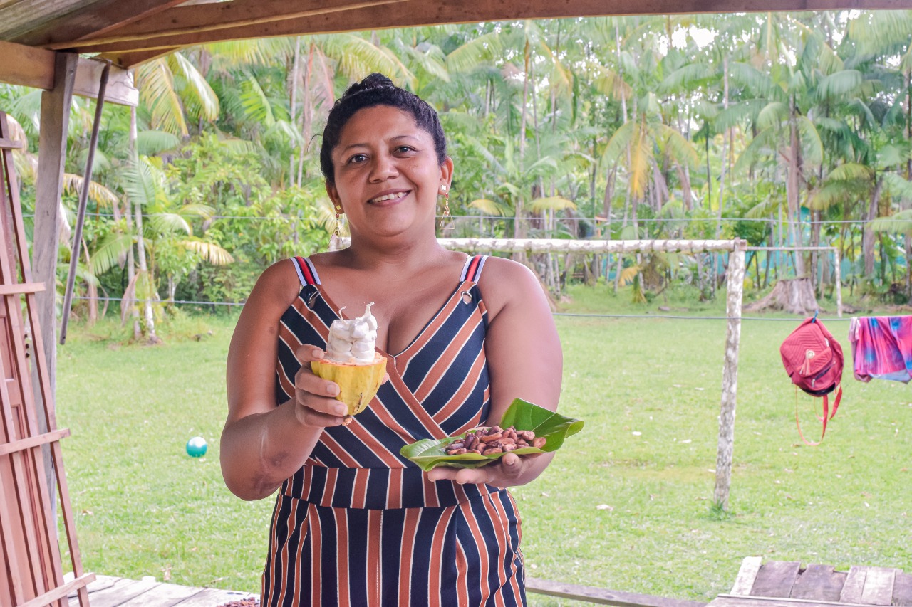 Eliana reforça a importância de todo esses incentivos ofertados pela Secretaria. “Recebemos cursos de beneficiamento do cacau, de produção, de compostagem. Antes dessa assistência, a gente desperdiçava muito do fruto porque não sabíamos aproveitar, agora a gente aprendeu a fazer o licor, a geleia, o mel, o chocolate em pó, que eram coisas que tínhamos vontade de fazer, mas não sabíamos como. Com os cursos essas produções se tornaram fáceis e com mais qualidade, passamos a aproveitar 100% do cacau”.